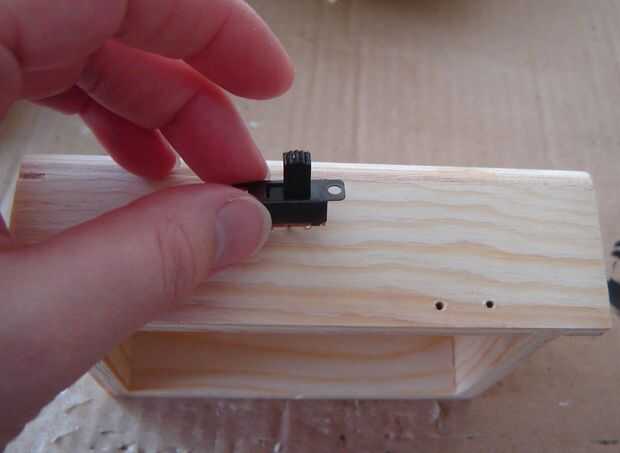 - Marca en la parte posterior donde el interruptor on/off es ir y corte una ranura en la madera con un taladro y una Dremel.
