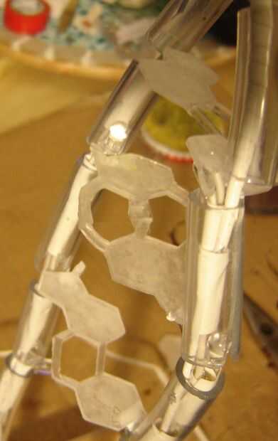 • Cortar las piezas de vinilo transparente tubo de forma que encajan entre los LEDs (pares de bases).