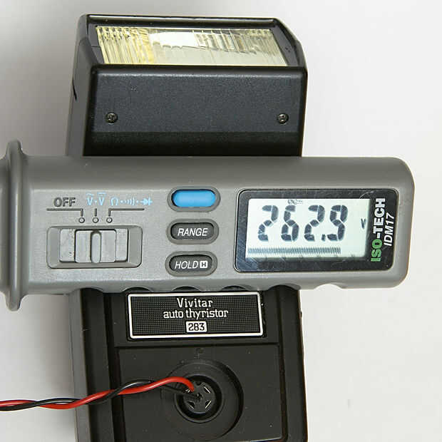 Este modelo antiguo tiene una desventaja: más de 260 voltios, un voltaje de disparo alta, algunas muestras más de 280. Un alto voltaje es mortal para las cámaras digitales que se ajustan a ISO 10330 estándar y soportar 24V. Que solo las cámaras de Canon que ignoran las normas y no acepten más de 6V!