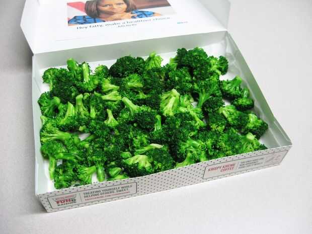 Coloque el brócoli en la caja de Donut.