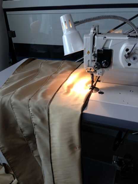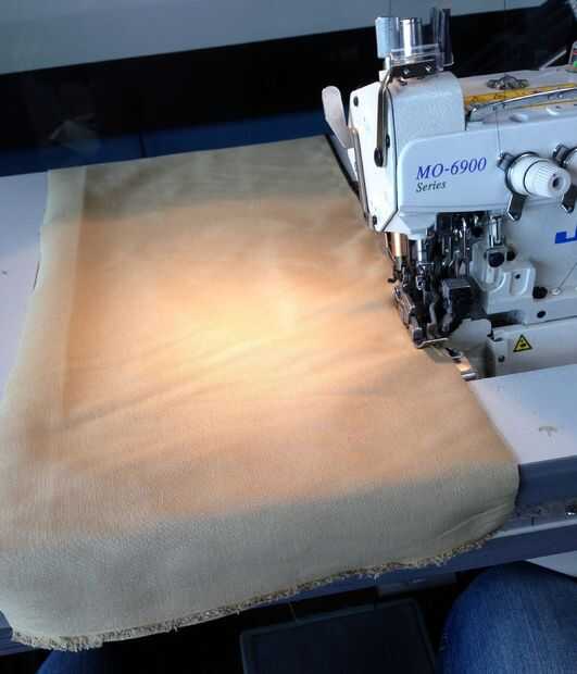Serge tanto cortan los bordes de cada tira, luego doblan bajo y dobladillo en un lado de cada tira. Recordar que el lado mate frente a, así que asegúrese de doblez/dobladillo apropiadamente.