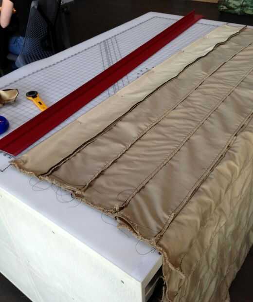 Mídase la circunferencia del tubo y asegúrese de comprar la tela lo suficientemente ancha como para caber alrededor de una sola vez. Probablemente significa un perno ~ 60" ancho de la tela. Puesto que mi material tenía un lado brillante (interior - piel sandworm no es brillante!) y un lado mate (exteriores para mejor la piel sandworm) a ser mediante los términos brillantes y mate a continuación para indicar cómo posicionar a su tela. Aunque la descripción siguiente es difícil de seguir, la ubicación real es bastante simple - solo meterse con ella (usar tiras de papel y cinta adhesiva si es necesario) hasta que usted entienda lo que está sucediendo.
