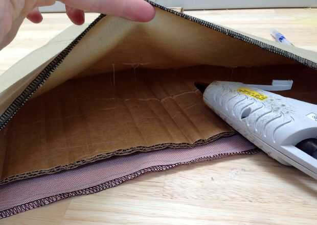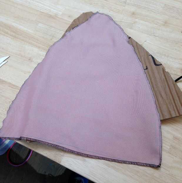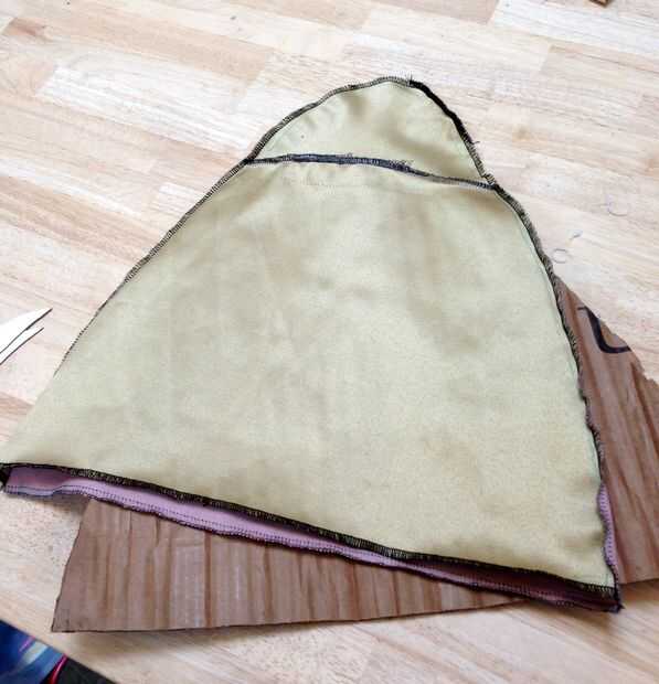 Coser los bordes curvados juntos, contra derecho, luego dé vuelta la derecha-lado-hacia fuera e Inserte el cartón.