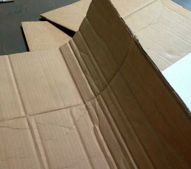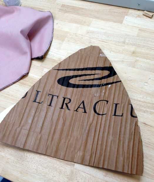 Cortar tres triángulos curvos como la boca. Usé el muy "adivinar y comprobar" método técnico-YMMV. Asegúrese de que las corrugaciones ejecutan en la dirección correcta por lo que se puede rizar la cartulina hasta ajuste el tubo. Doblar por la mitad para asegurar que sus piezas bucales son simétricas y traza para asegurar que son todos iguales. Darles otra buena curling plegable para asegurarse de que están bonito y flexible.