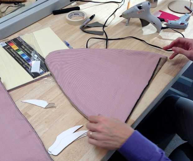 Coloque el paño a la superficie de la cartulina con pegamento caliente y luego con doblez en los bordes inferiores y cola cerrada como estás envolviendo un regalo. ¿No se ven estas impresionantes?