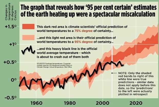 El Mail on Sunday hoy presenta evidencia irrefutable de que las predicciones oficiales del calentamiento climático global han sido catastróficamente defectuosos.