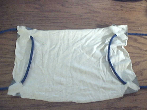 Voltee su paño, luego la cuerda de la alimentación a través de un agujero y por el otro.