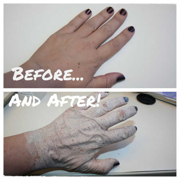 No olvides los pequeños detalles para hacer que alguien parezca antiguo. Maquillaje de belleza tradicional puede aplicarse sobre el maquillaje de estiramiento y stipple. Ben Nye hace una plata y una pintura blanca de pelo de edad. Aplicar a las cejas y el pelo con un limpia spoolie cabello blanco o gris. Un par de gafas de lectura baratos añade otra dimensión de credibilidad.