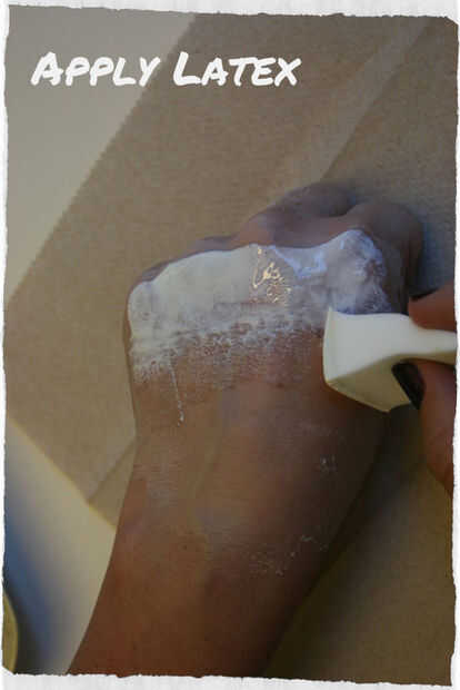 Usando la esponja sin látex, stipple un fino, incluso capa de látex sobre la zona estirada.