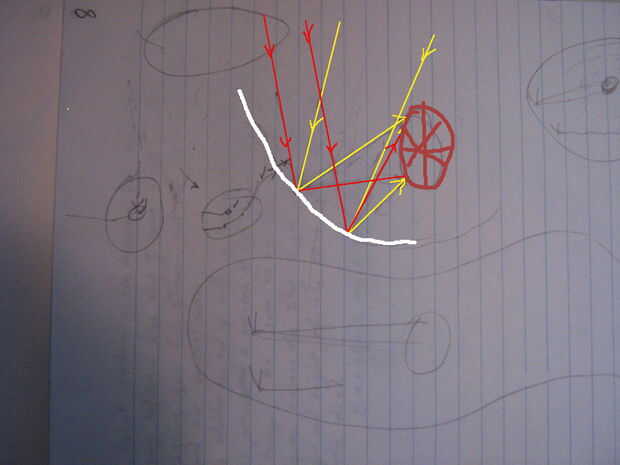Preferible debe golpear con un rebote. Sin embargo puede ser que vale la pena para que rebote varias veces si aumenta el tamaño del reflector suficientemente.