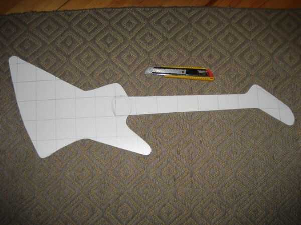 (ESP) Recorta el cuerpo de la guitarra. En este caso (al ser de PVC) hemos utilizado un cortador, pero podrias usar una sierra o un mini-taladro.