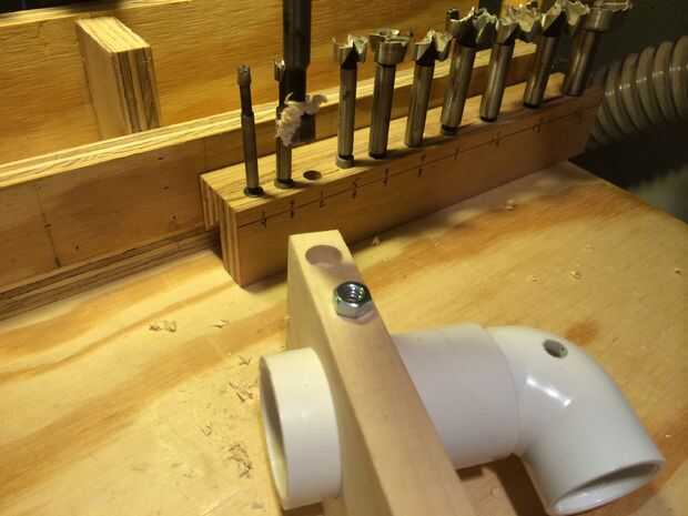 Por un lado, perforó un agujero de 3/8" para la tuerca de la hendidura y luego a través del perforado con un 1/4" bits. Puesto que mi granito de arena no fue suficiente y que quería evitar que sople, acabé en el orificio de 1/4" del otro lado.