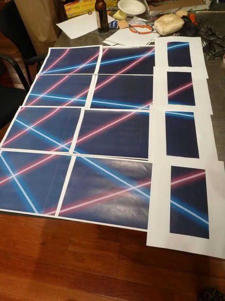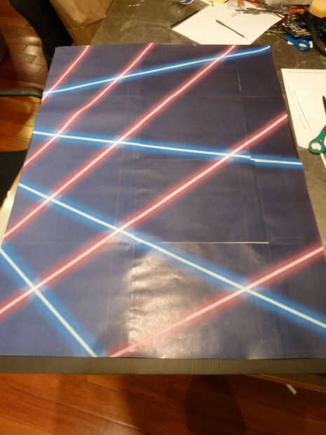 Simplemente imprima estas 12 imágenes y extienda encontrar donde ir. Asegúrese de imprimir cada 100% de la escala (ver mi captura de pantalla para la referencia), sin dejar que su impresora cambiar el tamaño para caber la página. Cortar y pegar cada pieza entre sí primero. Luego, una vez que esté satisfecho con su hoja de papel, cuidadosamente mediante adhesivo en aerosol para fijar a su respaldo.