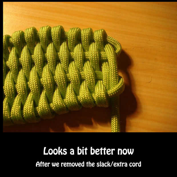 Paso 1: materialeslongitud 14 pies de paracordReglaTijerasEncendedorPaso 2: Medir 3-4 pies y usar este para hacer el paso 2 y 3.Paso 3:Paso 4: Partir de este momento, mantenga el extremo más largo a través de cada lazo de tejer hasta llegar al final
