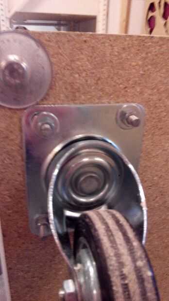 5. Atornille las ruedas a las cuatro esquinas de la placa base.