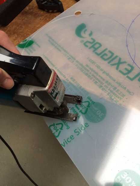 3. Marca un panel de acrílico con el mismo diámetro que la ventana de cristal y recortarlo con una sierra de calar.