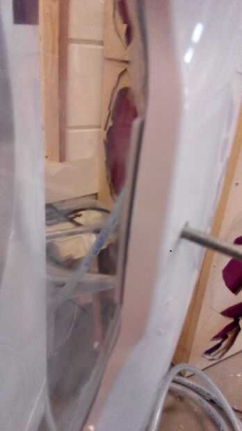 7. Corte un agujero en el panel de acrílico donde saldrá la espuma de la máquina.