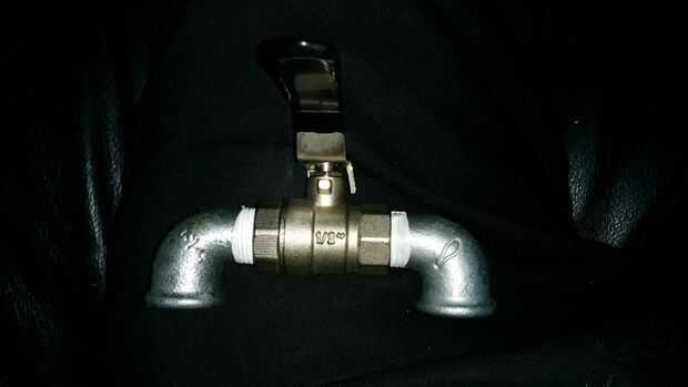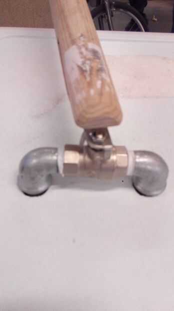 - Añadir el mango de madera a la válvula, comienza por cortar el mango de madera nueva a la longitud. Entonces utilizando la Sierra de cinta corte una muesca en el extremo de la madera donde las válvulas manija inserta. Perfore dos la madera a través de los agujeros y luego a través de la manija del acero inoxidable de la válvula. Una vez que éste se hace Monte todo con había roscado de barras y tuercas.