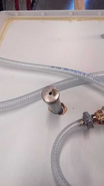 - Corte el tubo más largo (120mm) para que llegue a encajonar (plástico blanco) del tambor sin tocar el tambor (acero inoxidable) sí mismo.