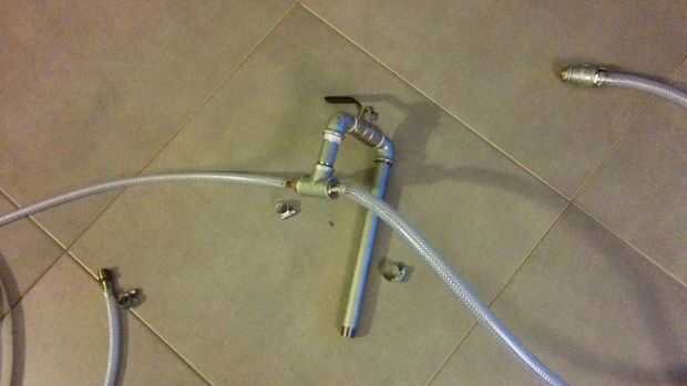 - Enrosque un conector de manguera de 12mm en un extremo y un conector de manguera de 8mm en el otro extremo de la pieza en T.