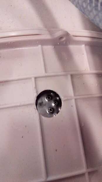 - Marque el tambor a través del agujero que está directamente por encima de la mitad del tambor. Luego perfore el plástico del tambor a través.