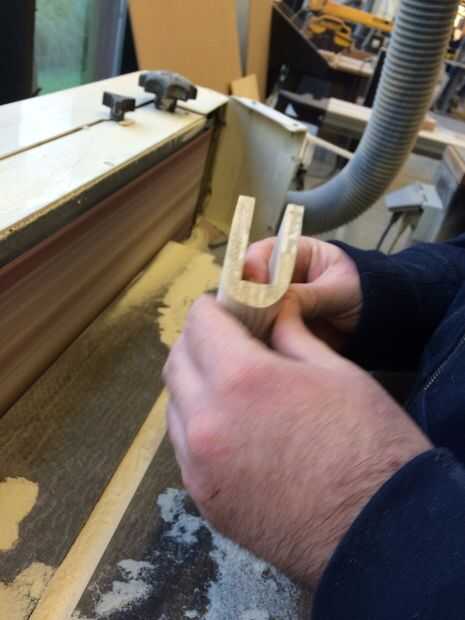 5. Luego refinar la forma de la empuñadura con una máquina que enarena.