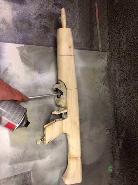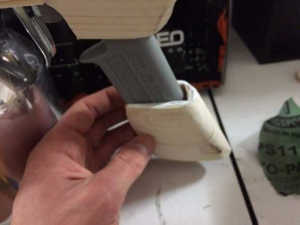 7. Unir todas las piezas de la pistola, una vez seco lijar todo hasta que tenga un diseño ergonómico.