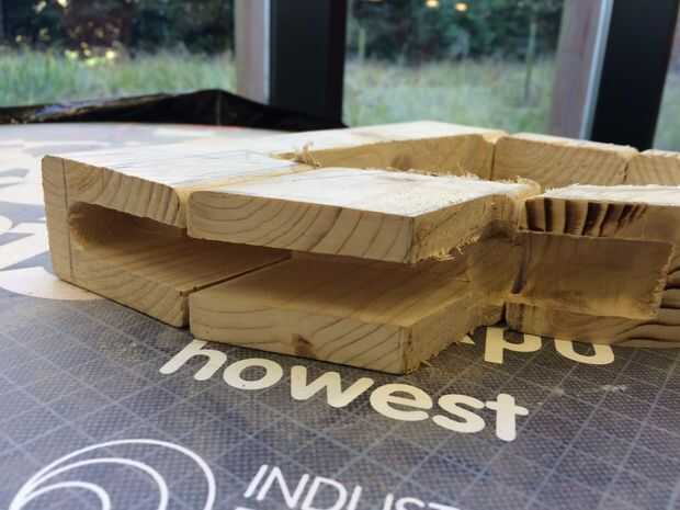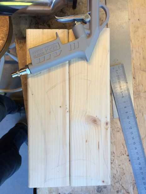 2. Perfore a través de un agujero el centro de las dos piezas de madera, con un diámetro que es el mismo que el diámetro del cañón de la pistola de aire comprimido.