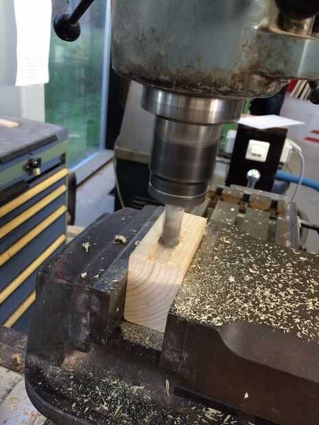 3. Usando un torno, ruta de un vacío que se ajusta el mango.