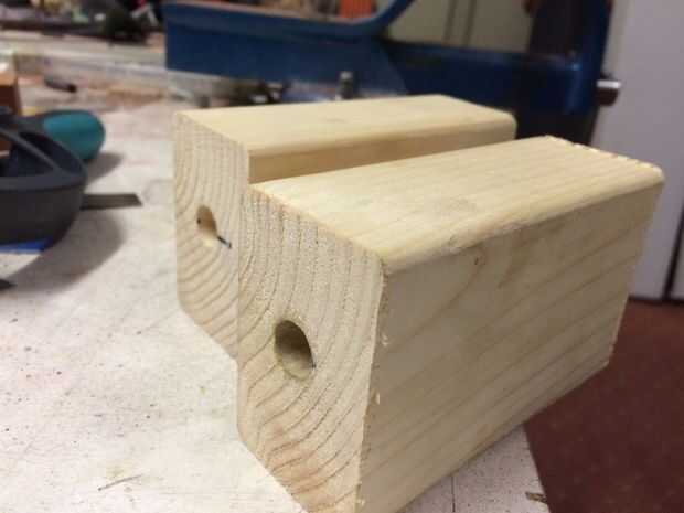 6. Utilizando aún otra pieza de madera hacer una pieza que se ajusta entre el mango y el mango.