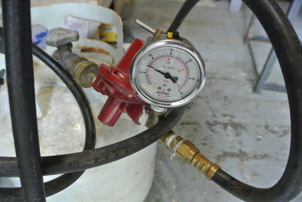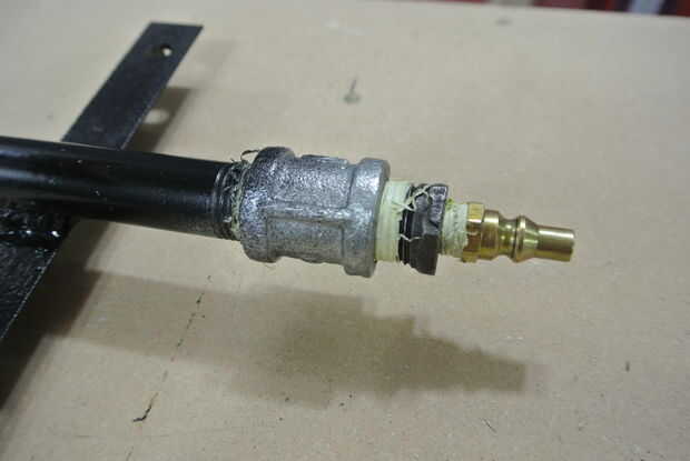 Por último: el quemador trabaja muy bien en medio a la máxima potencia a 5 psi de gas propano pero si baje el propano no permanezca encendida. Me di cuenta de que el aire a la mezcla de propano no era correcto (demasiado aire). Para solucionarlo he usado algunos metal cinta parte de la ingesta, limitando la cantidad de aire creando un cebador, esto tuvo un gran efecto, que me permitía tener una llama desde el tamaño de una vela hasta un dragón de respiración del fuego. No tuvo ningún efecto negativo a plena potencia, como sospecho que fue todavía capaz de tire suficiente aire para mantener una llama azul bonita.