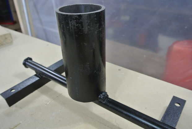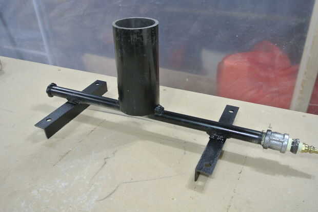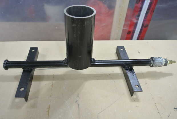 Tomé un tubo de 1/2" y mide cuánto lo necesitaba para la estación de wok, que corte y soldado con autógena cerrado el corte final. También puede encontrar un tubo de la longitud correcta y un extremo con un accesorio del casquillo. Entonces soldados sobre dos trozos de ángulo de hierro a cada lado de la tubería para el montaje. Los agujeros fueron perforados en cada ángulo de hierro para el apernado en el soporte. Aproximadamente me centré el quemador en el stand por lo que pude ver dónde taladrar el agujero orificio y Monte el tubo del quemador. Me centro donde quería el agujero orificio ser y utilizando una prensa del taladro perforé un agujero de 1,3 mm perforados. Entonces soldó con autógena en la 3 "x 6" calendario 40 tubería de acero para el tubo del quemador. Añadí un acoplador de 1/2" y reduce hasta forma un propano rápida liberación y que se une a un regulador de propano de alta presión de la manguera. La parte inferior está el aire admisión y funciona por el efecto venturi, como el propano se enciende tira aire (al menos es cómo creo que funciona).