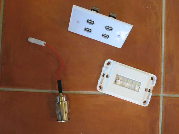 La placa de 4 vías es una placa std para insertos de keystone, los insertos se son para las tomas USB (no se muestra en la foto) son estos: