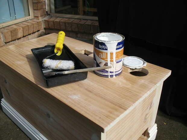 He utilizado un sellador combinado, imprimación y capa. Sólo 1 capa necesaria. El cuadro está pintado interior y exterior.