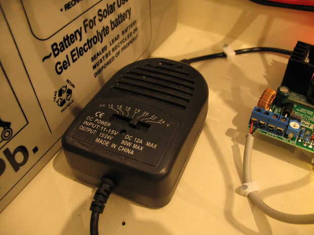 Esto no puede fijarse en posición así que sólo puse abrazaderas sobre los cables de entrada y salidos. El cable de salida pasará por la placa de pared de pincel en la tapa de la central eléctrica.