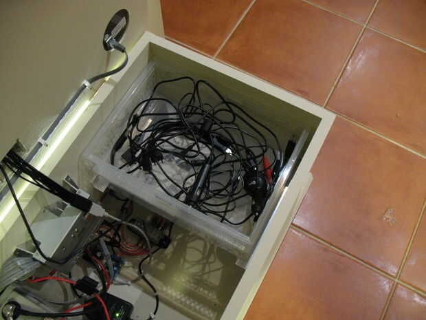 Hacia el final de la Asamblea que decidí montar un par de bandejas de plástico. La idea es que usted tendrá cargas de cables USB, verrugas de pared, manuales de instrucciones - básicamente cargas de parafernalia que necesita un hogar y una ubicación usted puede ir a sin buscar toda la casa!