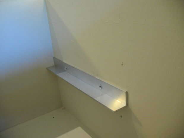 Dispone de un par de ángulo de aluminio 25x25mm a la derecha de la caja. Son 170mm situado hacia abajo desde la parte superior de la caja. Esto es para adaptarse a 2 de las bandejas plásticas de Howard Storage World. -Si usted no puede conseguir estos estoy seguro usted puede encontrar una alternativa.