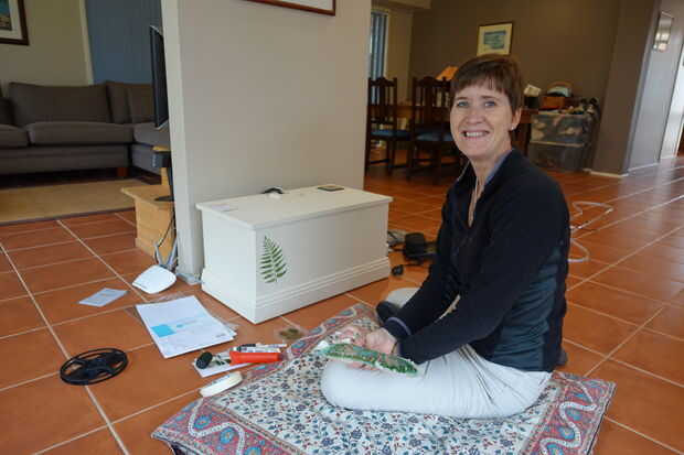 Con la ayuda de mi hermana y un paquete de plantillas de Martha Stewart hemos añadido un toque de color y singularidad a la caja de color beige suave!
