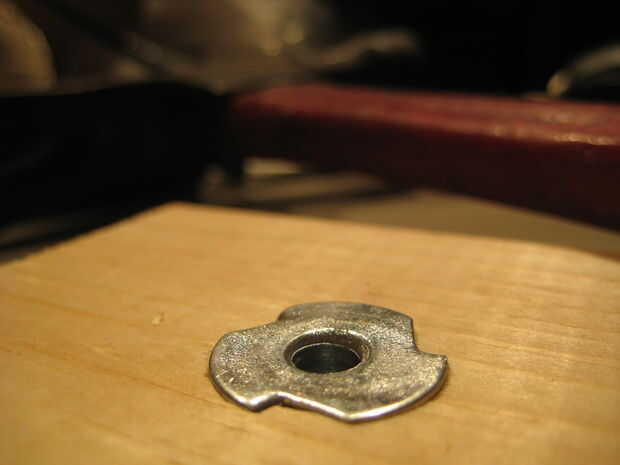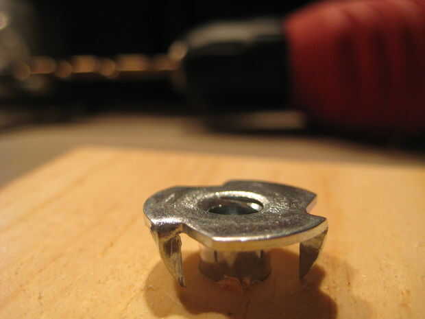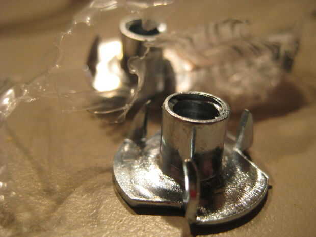 ** Solución. Mientras que la idea era sólida logísticamente no funcionó. Fue difícil apretar, t-tuerca no quería quedarse. Mi sabio padre coloca una abrazadera en el agujero que hemos hecho de la madera y el tornillo se usa para ajustar la altura del ala de extensión. Así se resolvió el problema.