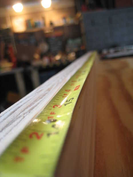 Hemos añadido una cinta métrica a cerca de la derecha. Nos aseguramos de que empezamos en la longitud que corresponde a la longitud de la hoja. Tengo esta cinta de recambio en Sears, para $1,47 en separación. Pienso en conseguir otra cinta para el otro lado, una probable de woodcraft o algún otro sitio web que vende la cinta con adhesivo en la parte posterior.