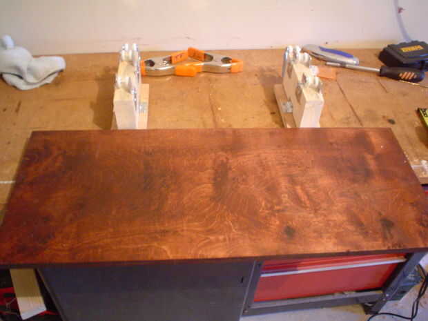 La sección gabinete de la derecha es también la zona oculta de la impresora. La plataforma va en cualquier nivel dado cuando se insertan en el gabinete. Mi área de almacenamiento había medida 17 1/2" ancho, 17" profundo y 10 1/2" alto. Ajustar en consecuencia a su gusto. La única área de preocupación es asegurarse de que las dimensiones interiores son suficientemente ancha como para su impresora. Mayoría de las impresoras son relativamente compactas. Mina fue 16" en su punto más ancho. Si no planea utilizar esto como un área oculta de la impresora, es irrelevante. Cortar tres piezas; el lado izquierdo como 10 "x 17", la derecha como 6 1/2 "x 17" (más corto ya que se monta por debajo de los 3 1/2" altura 2 x 4 para hacer full 10" para que coincida con el lado izquierdo) y la parte inferior como 17 1/2 "x 17". Básicamente, la parte inferior se monta por debajo de los dos lados, como entre los dos lados, para mantenerlo simple. Así no tengo que tratar de esconder los tornillos, acabo de ir de debajo. Luego corte el estante que irá dentro del gabinete en caja a las dimensiones interiores. De nuevo, mina fue 16 1/4 "x 17". También, asegúrese de cortar una pieza extra de madera dura de 3 "x 6 1/2" para insertar entre la pared y el gabinete de apoyo adicional.