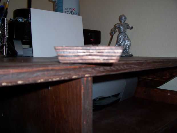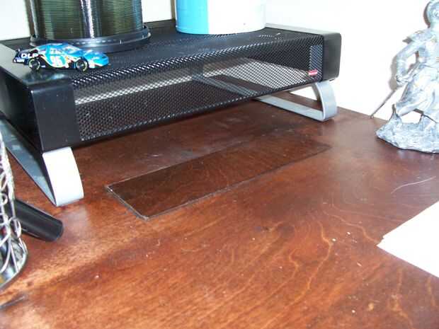 Ya que estaba seguro de que siempre me gustaría que el agujero, la hice a donde era reemplazable. Si se corta en un ángulo, puede fácilmente vuelva a colocar la parte superior y tienen su espacio de nuevo. Sólo hay dos lados, así que una vez que hayas decidido donde el recorte va a ser, taladre dos agujeros en las esquinas opuestas lo suficientemente grandes para insertar su hoja de rompecabezas a través de, mientras se asegura que el agujero no vaya fuera de la línea medida le dibujó de la abertura. repito, taladro en la parte interior en la abertura, no el exterior. De lo contrario, usted va pegado con dos agujeros en forma de luna en tu escritorio. También he creado una réplica de la pieza de madera que salió porque tenía agujeros en ella. No sé de una manera alrededor de esto, pero a mi no me ponen mucho esfuerzo a pensar de una manera alrededor de ella, así que... Yo un poco como la pieza de la réplica de todas formas porque es un grano diferente, así no tratando de ver como no existe. De hecho allí y se ve bien. Podría tomar lijar un poco para conseguirlo para encajar justo, pero merece la pena.
