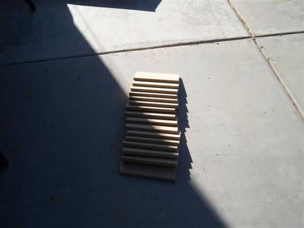 Medidas de Innerbubba era un poco más grandes que la mía. Su material era 8 ft x 1 ft x 3/4 pulgada de madera. ella hizo este material en tableros de 6 "x 12" (16).