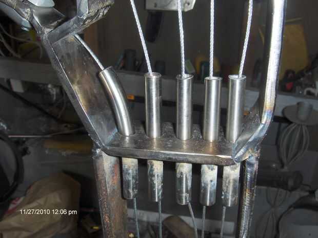 aquí es algo construyó hace 3 años durante el verano. Lo único que realmente hace es abrir y cerrar los dedos de la mano, pero también muestra cómo funcionan los tendones de una mano humana real. Realmente es un proyecto bastante interesante y puede