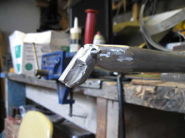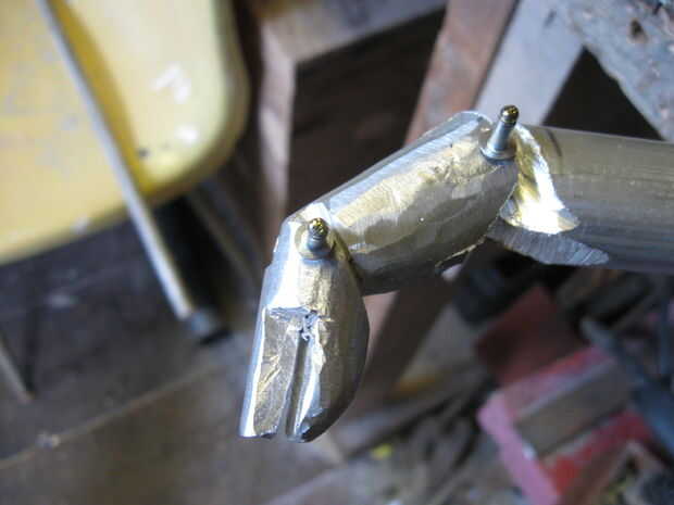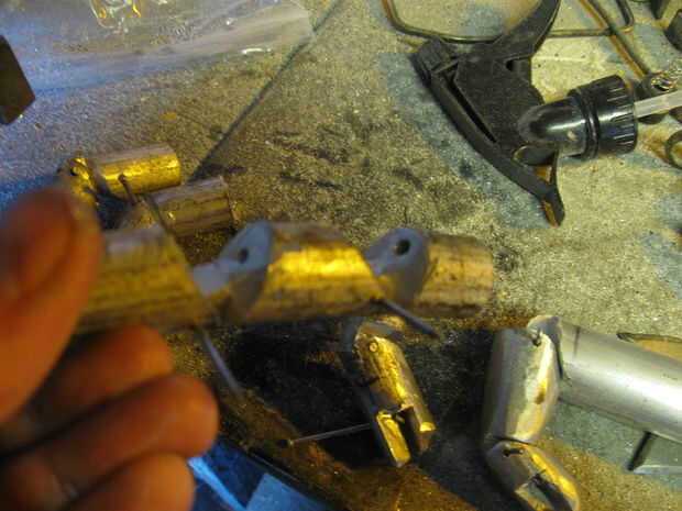 6. Se insertan clavijas temporales, clavos funcionan bien.  Serán soldadas en el extremo como armar esto requiere algunas etapas que desmontar un poco.