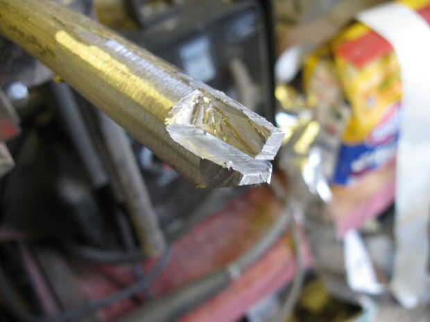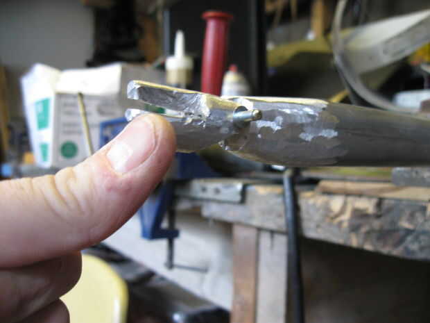 3. Las uniones se logran haciendo las articulaciones del dedo en la barra de aluminio, uno de los extremos tiene una muesca, mientras que el otro extremo los lados afeitados hasta la siguiente muesca de ajuste conjunto.