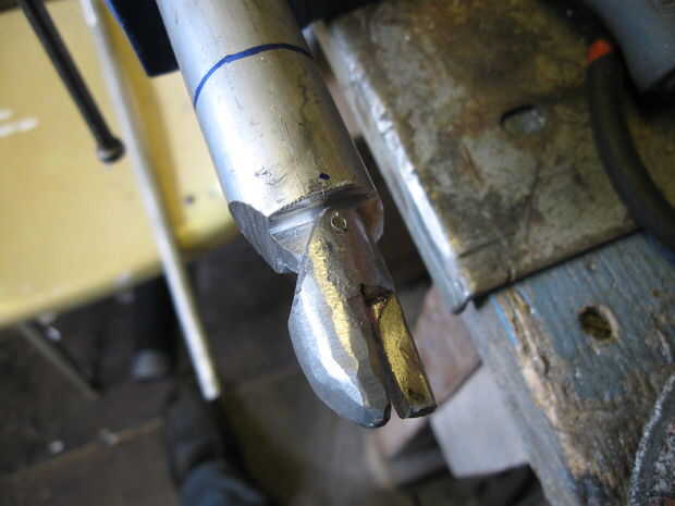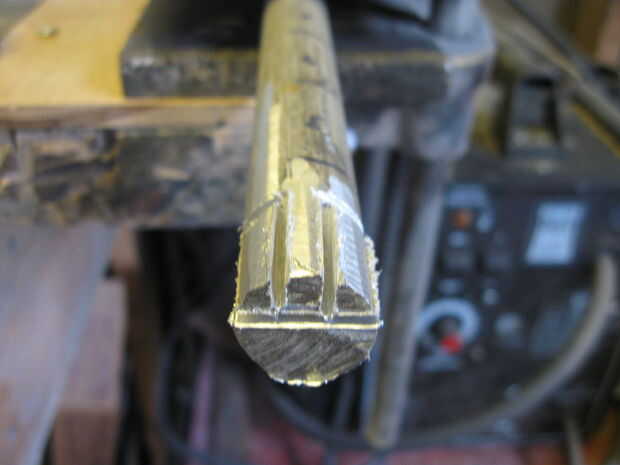 2. Formar es hecho por afeitado secciones uno a la vez con discos de corte, entonces en forma con una lijadora de tambor.  Se cincelan bits ásperas que herramientas rotatorias no se pueden obtener en hacia fuera.