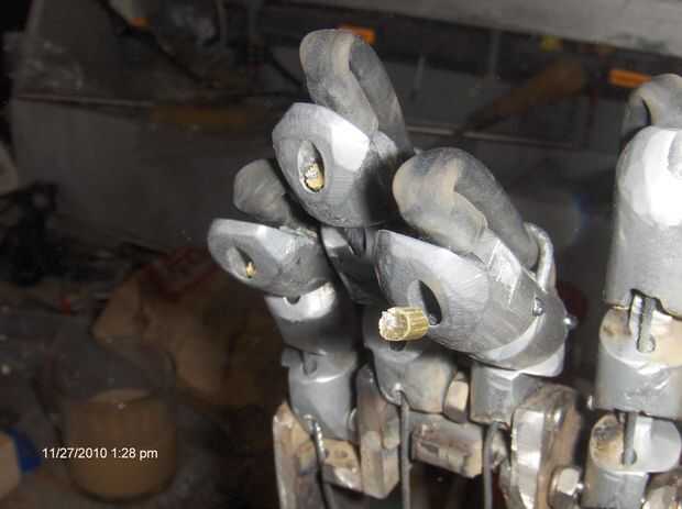 3. Perforó un agujero en las puntas de cada dedo a la punta de bronce, pero no todo lo largo como a han que resbale hacia fuera completamente.