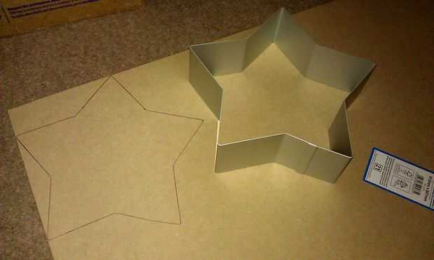 Para obtener la apariencia retro de la señal, la estrella tuvo que ser hecho de metal. Como todos mis proyectos DIY se hacen en el suelo o encima de mi caja de herramientas, he pensado que necesitaría un poco de ayuda para crear el borde del metal. Por suerte me las arreglé para encontrar un molde de tarta de queso de 11 pulgadas, en forma de estrella de aluminio en un sitio de subastas en línea popular :) El molde no tiene una base así que compré algunos hoja de mdf de 3mm y puso a hacer uno que podría empotrar en interior. Para crear la base, simplemente puse la estrella en la hoja de mdf y trazada alrededor del interior del molde.