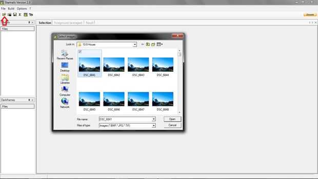 -Haga clic en la carpeta 'abierta' y seleccione las imágenes a la pila